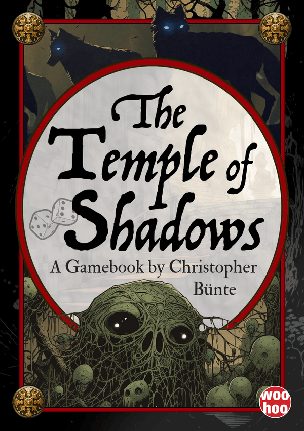 »The Temple of Shadows« spielt direkt im Anschluss an das Spielbuch »Shadow over Brinthal«. Du musst darin einen verlassenen Tempel erkunden und einen alten Fluch brechen.